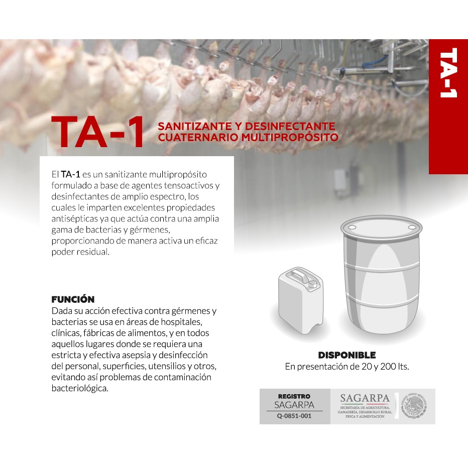 TA-1 SANITIZANTE Y DESINFECTANTE CUATERNARIO MULTIPROPOSITO